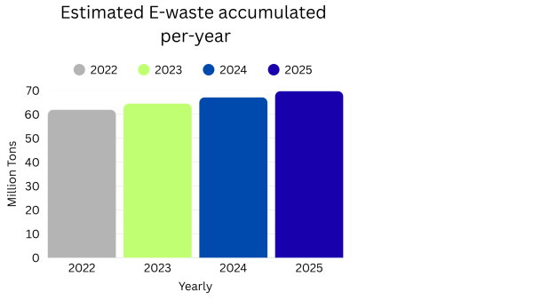 E-waste is recyclable, but only 22.3% of e-waste is correctly recycled and collected. In 2022, about 61.9 million tons of e-waste were generated, and it has been rising by about 2.6 million tons annually, according to human-i-t.org. When e-waste is tossed in landfills, harmful chemicals seep into the ground, contaminating the water supply, which can affect the local ecosystems as well as the health of people living nearby. To properly dispose of e-waste, there are many recycling centers nearby: https://calrecycle.ca.gov/.